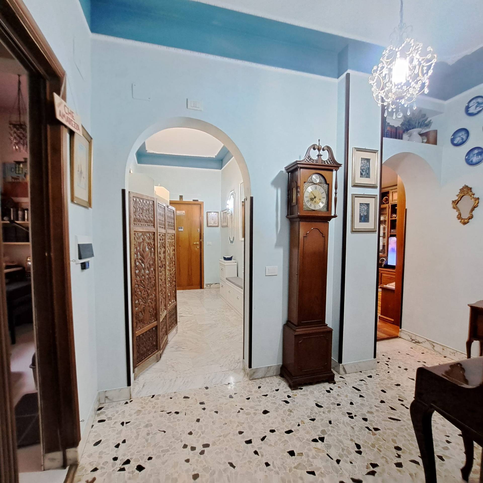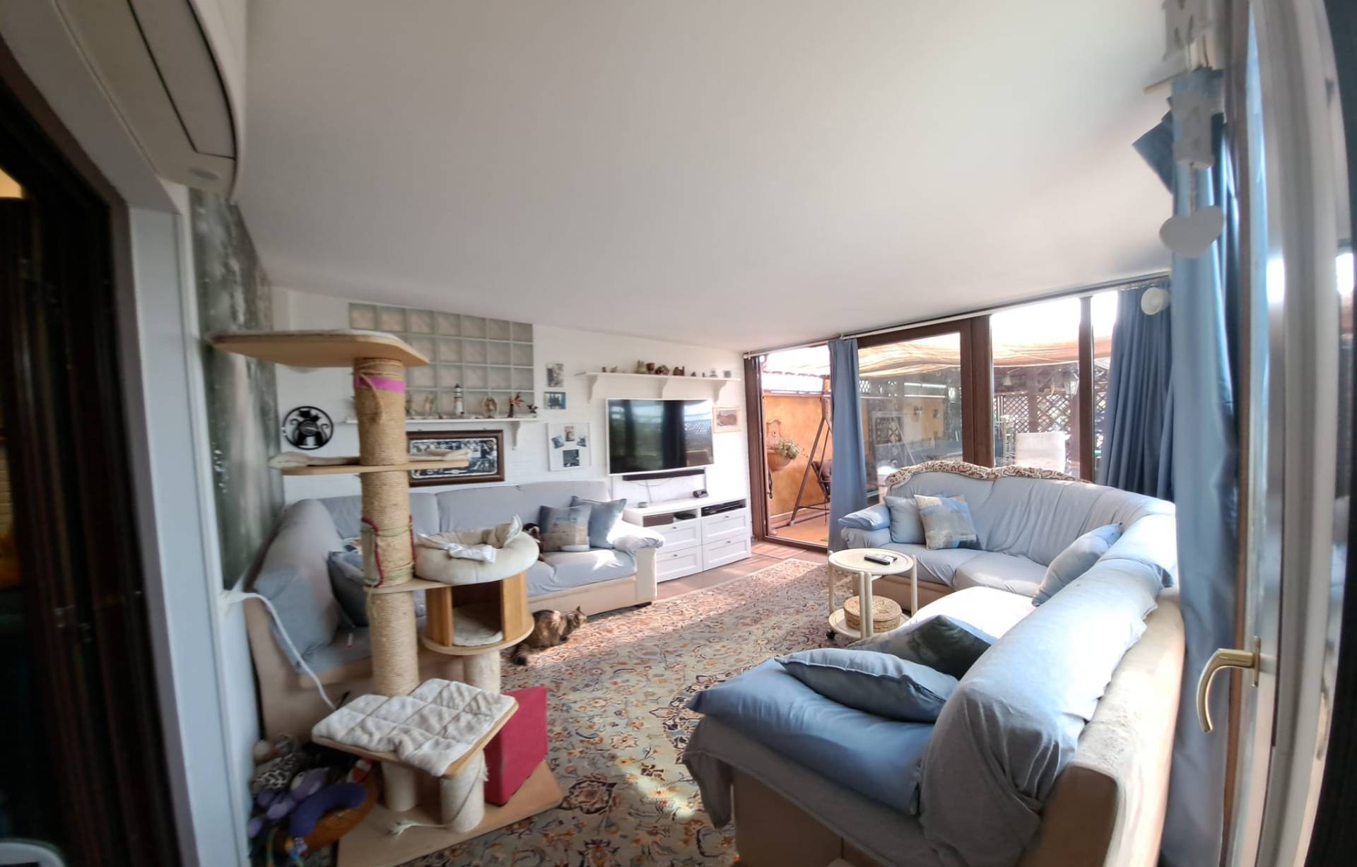 L’ingresso si apre su un ampio e accogliente soggiorno con accesso alla veranda e alla terrazza entrambi gli ambienti sono climatizzati — un ambiente perfetto per pranzi all’aperto, serate con amici o momenti di relax al tramonto.